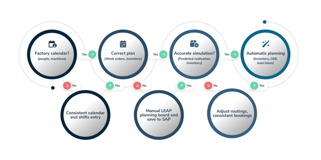 But first things first … Let us take a look at what exactly happens when AI takes over production planning and what are the preconditions to reap the mentioned benefits and savings …